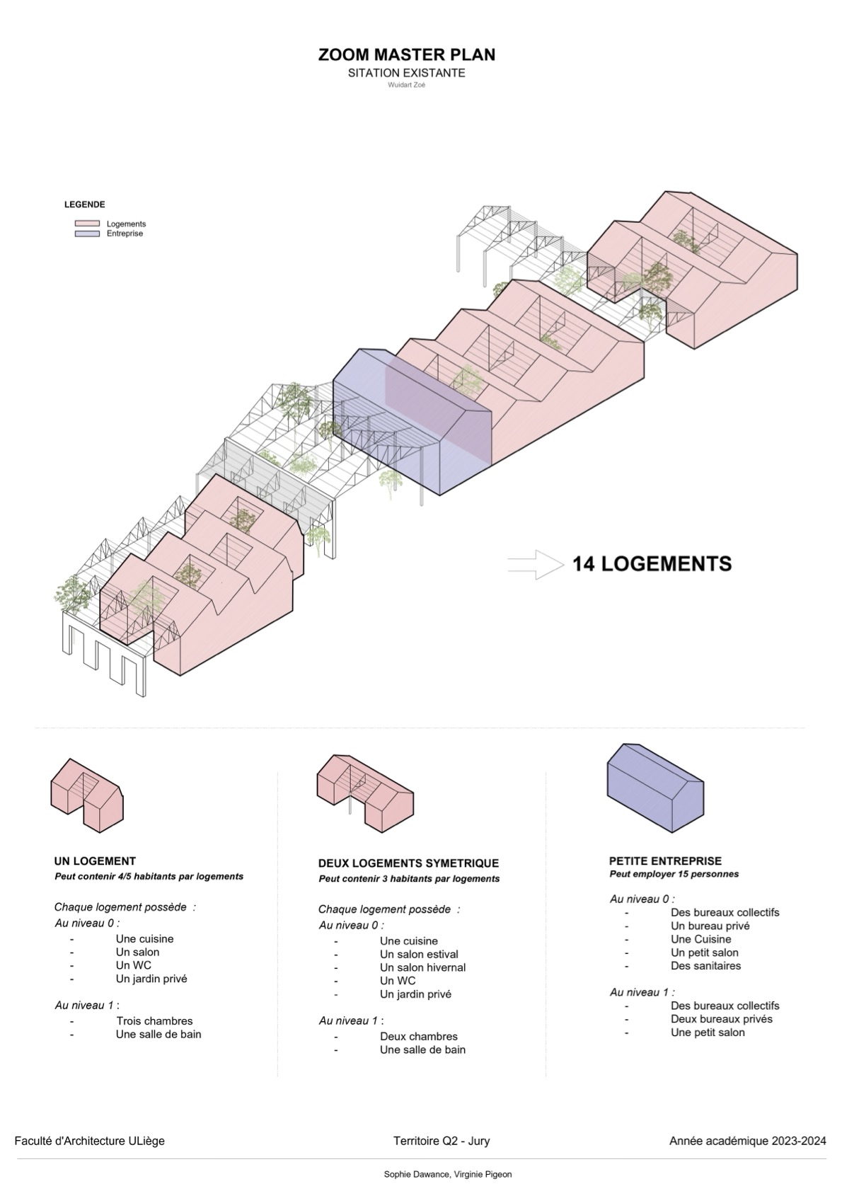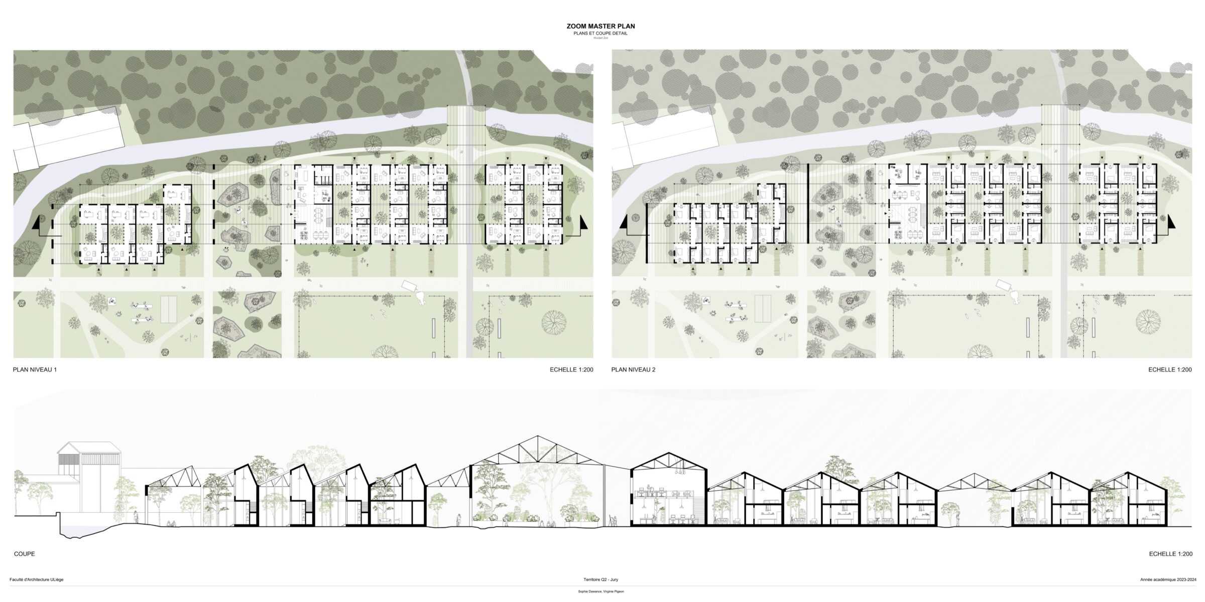 Le projet envisage le rédéploiement économique de la vallée à travers la production locale d’énergie par la biomasse et les cultures fruitières. Cette conversion dessine un nouveau paysage et permet la résilience aux inondations. Elle offre également de nouveaux lieux de vie et de convivalité. Deux bâtiment industriels sont reconvertis en logements de qualité et en équipements collectifs.