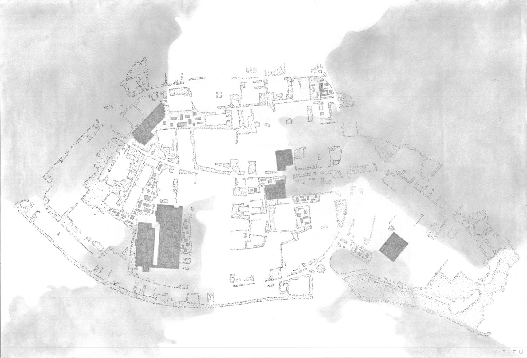 Le projet convertit un bâtiment industriel des Hauts Sarts en un logement collectif modulable. L’objectif est de redonner une échelle plus humaine à ce contexte industriel tout en ayant une approche vis-à-vis des futurs défis liés à l’eau comme la nécessité de stocker l’eau pour la redistribuer ultérieurement. La figure dévoile des zones perméables qui seront alimentées par l’eau récoltée sur certaines toitures.
