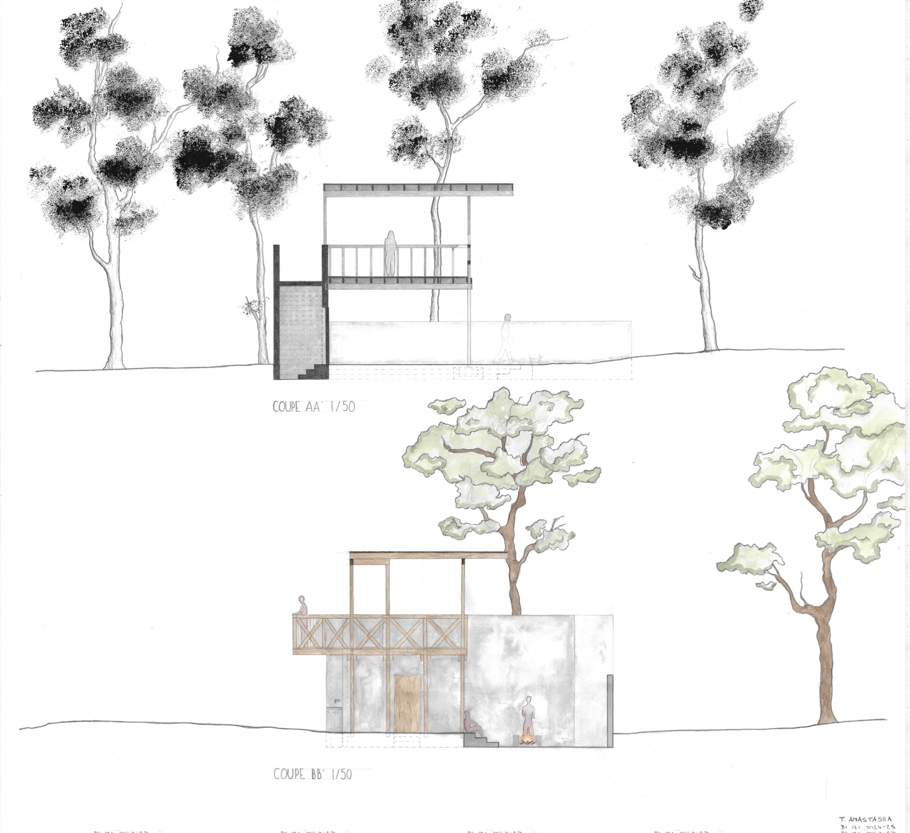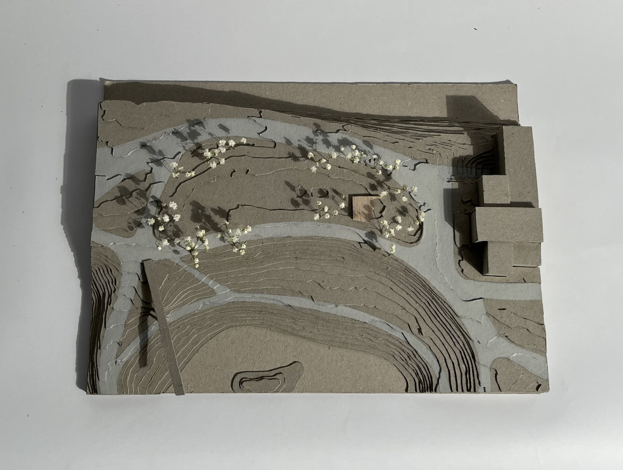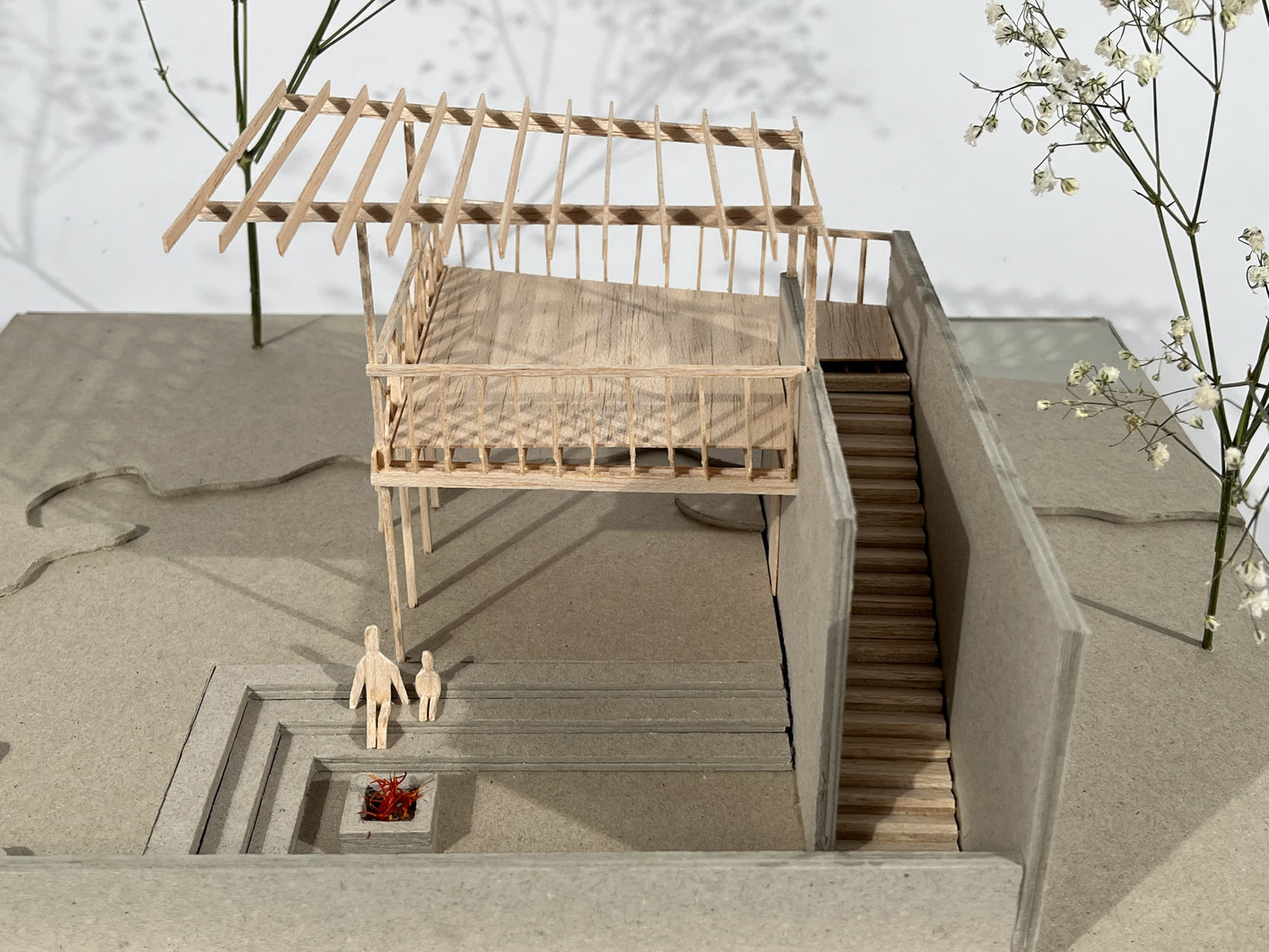 Ce pavillon est en lien direct avec son environnement, notamment le musée et les cheminements piétons. Son orientation tient compte de l’ensoleillement, et l’ensemble vise à créer un lieu de rassemblement convivial.