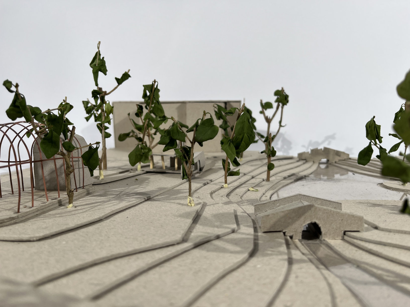 Enfin, le système de collecte d’eau, intégré aux toits végétalisés illustre la dimension poétique et écologique du projet, célébrant l’eau comme ressource essentielle et symbole d’une architecture durable.
